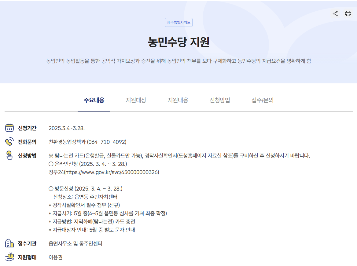 | 강원 | 2025년 2월 ~ 4월 | 농어업경영체 등록 필수 |