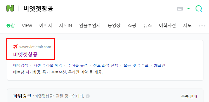 일반적으로 사용하는 네이버 또는 타 사이트에서 비엣젯항공을 검색해 사이트 접속을 합니다.