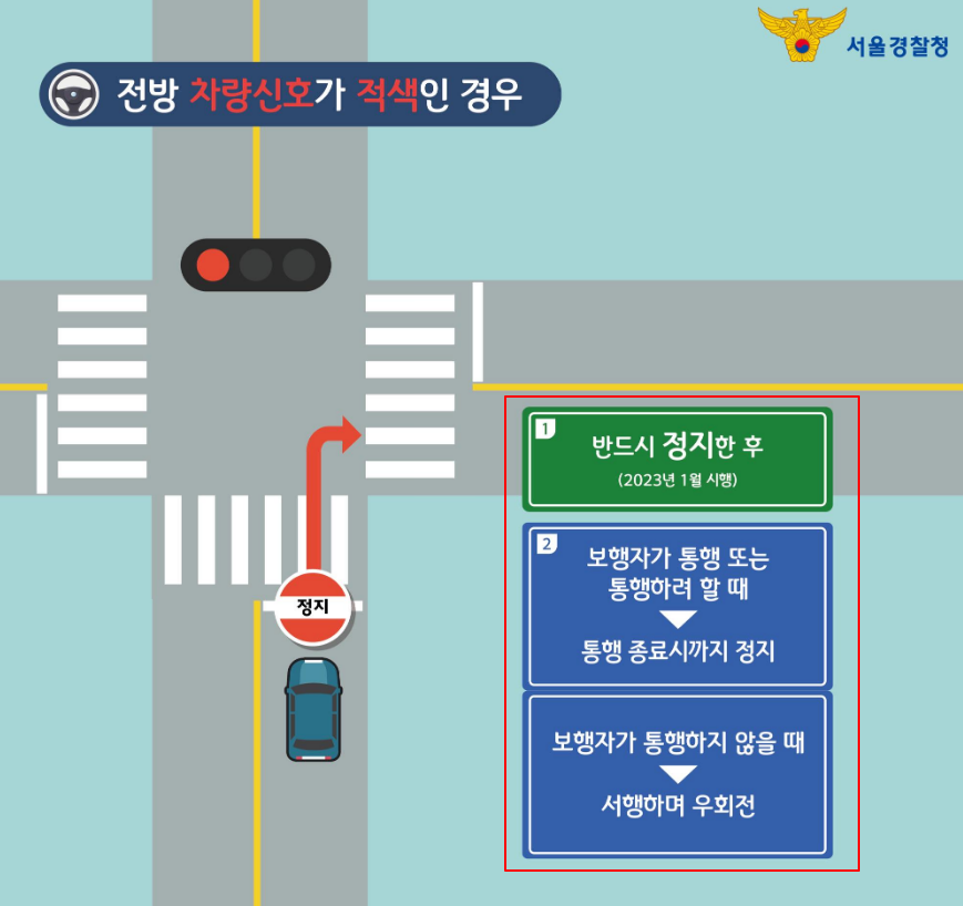 우회전 횡단보도 신호위반 기준 일시정지 방법