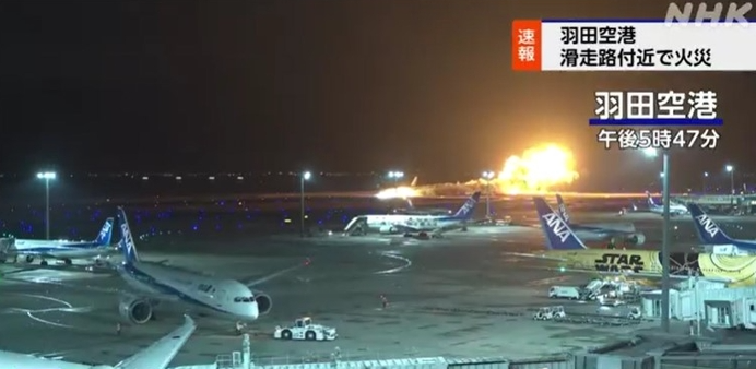 현지 공영방송 NHK 통신에 따르면 해당 항공기는 하네다공항 C활주로에 착륙을 한 뒤 활주로를 달리던 중 불이 붙은것으로 확인 되었습니다.